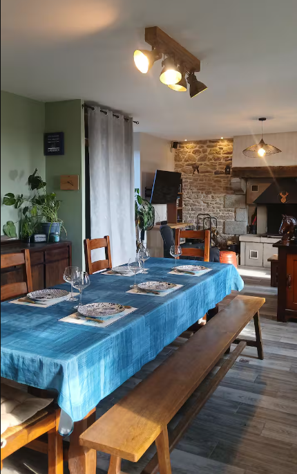 Ici, on partage une maison habitée, des espaces communs, et parfois des moments, si l’envie est là. Les chambres sont simples, calmes, et cohérentes avec l’esprit du lieu. Elles font partie d’un projet de vie en cours, dans un ancien corps de ferme que nous faisons revivre pas à pas, à 3 km des plages du Finistère nord.